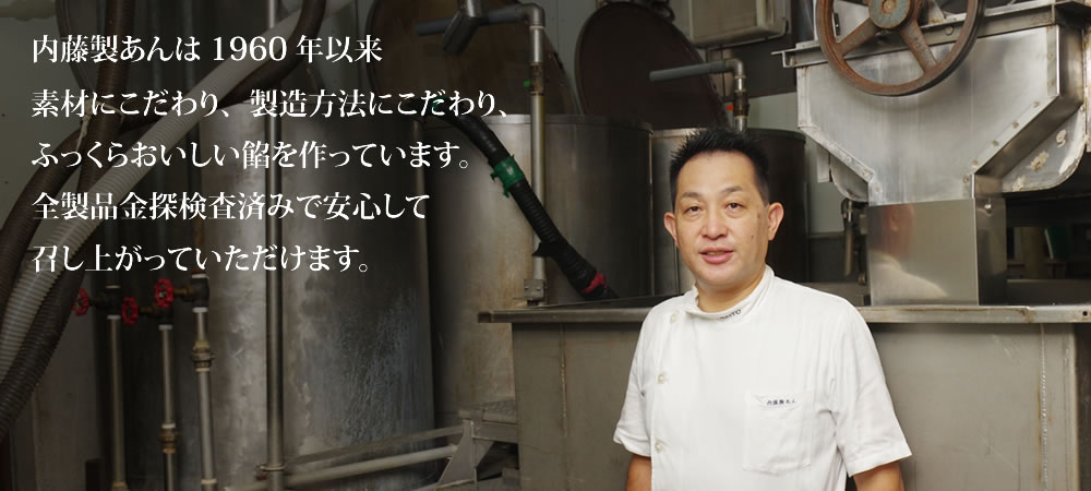 内藤製あんは、昭和35年(1960年)創業以来、あん製造一筋に歩んでまいりました。